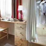 Good sized room with a mini-fridge-bar, a TV with satellite channels and a writing table. This hotel is equal to 3 stars.